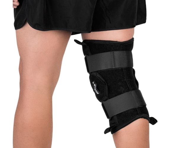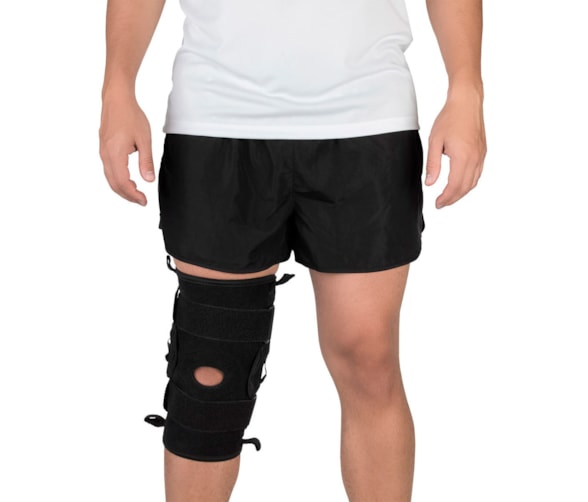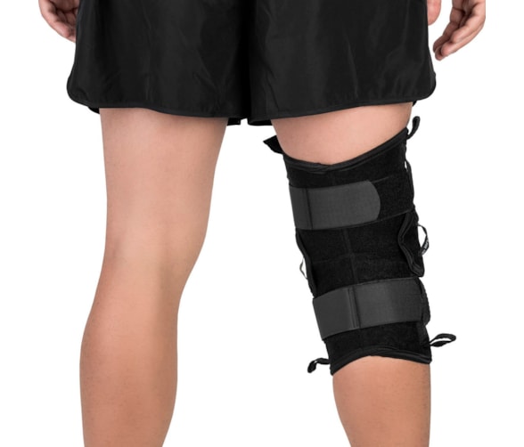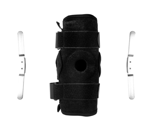 Além disso, ao inverter as dobradiças, a órtese pode ser utilizada para impedir o movimento de flexão, imobilizando a articulação do joelho.