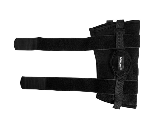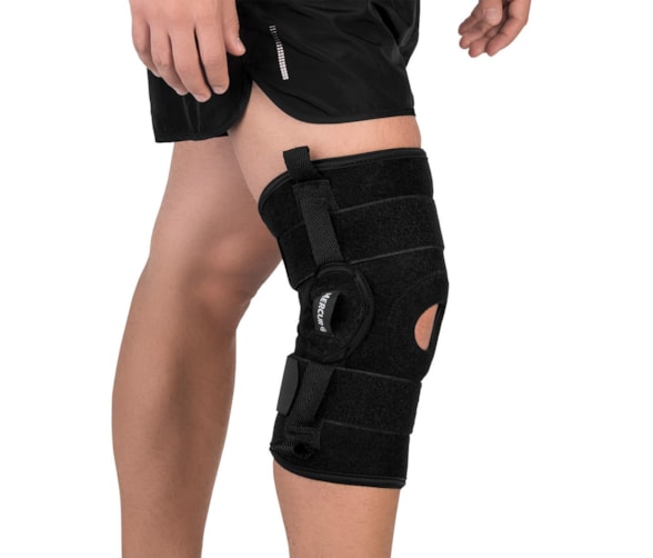 A Órtese para Joelho com Dobradiças Metálicas Mercur possui dobradiças metálicas laterais com trava, que evitam movimentos de lateralização e impedem a hiperextensão do joelho.