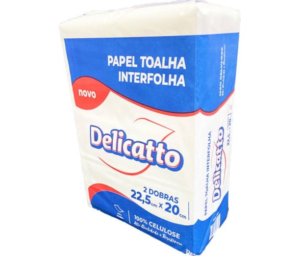 O papel toalha interfolhadas foi desenvolvido com matéria prima selecionada 100% fibras de celulose. Contém duas dobras, tonalidade branco, embalagem em fardo papel kraft.