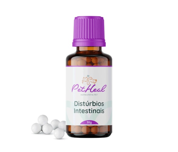 "Descubra o poder da linha Pet Heal, desenvolvida para apoiar a saúde intestinal dos seus animais de estimação com segurança e eficácia. ""Pet Heal - Distúrbios Intestinais 30g"" é uma formulação homeopática meticulosamente criada para auxiliar no tratamento de distúrbios intestinais como cólicas, distensão abdominal, dificuldade de evacuar e casos de diarreia crônica. Fabricado sem álcool, este produto é uma escolha 100% natural, ideal para integrar ou complementar outros tratamentos sem riscos de efeitos adversos.Composta por ingredientes homeopáticos selecionados, como Lycopodium clavatum e Chelidonium majus, nossa fórmula visa proporcionar bem-estar e fortalecer a imunidade do seu pet contra infecções e desconfortos frequentes. Os glóbulos são apresentados em esferas de sacarose, homogeneamente branquinhas, oferecendo um sabor adocicado e inodoro, garantindo fácil aceitação pelos animais. Basta administra-los sublingualmente, garantindo eficiência no resultado.Recomenda-se a administração de 6 glóbulos duas vezes ao dia, com a possibilidade de diluição no bebedouro para maior praticidade ao proprietário. O produto possui validade de um ano e é embalado em frasco âmbar, padrão para medicamentos homeopáticos, assegurando proteção eficaz contra a luz.Atenção para as instruções de armazenamento: mantenha o produto em local ventilado e fora do alcance de crianças e animais domésticos, evitando exposição a calor, umidade e radiações. Evite também a proximidade com substâncias de odores fortes como perfumes ou inseticidas. Siga sempre a orientação de um médico veterinário para garantir o melhor tratamento possível ao seu amigo peludo.Experimente a tranquilidade e a qualidade proporcionadas pela linha Pet Heal. Você perceberá a diferença no humor e no bem-estar do seu animal de estimação, conduzindo-o a uma vida mais saudável e plena. Faça a escolha consciente e cuide de quem mais ama!"