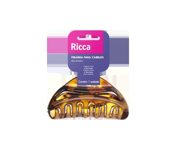 Piranha Ricca é ideal para prender as madeixas com estilo. Feita de material resistente, é perfeira para criar diferentes penteados e manter os fios afastados do rosto. O produto possui dentes largos que se encaixam com firmeza, sem danificar ou quebrar o cabelo.