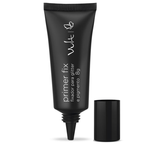 Vult Primer Fix - Fixador Para Glitter e Pigmento 8g - Fixa sombras, pigmentos e glitter na pálpebra para um efeito de cor mais duradouro e intenso - Vult Fix também pode ser aplicado sobre o rosto para passar glitter - Sua fórmula possui ação emoliente e antioxidante, que forma um filme protetor da pele que não interfere na cor da make aplicada em seguida.