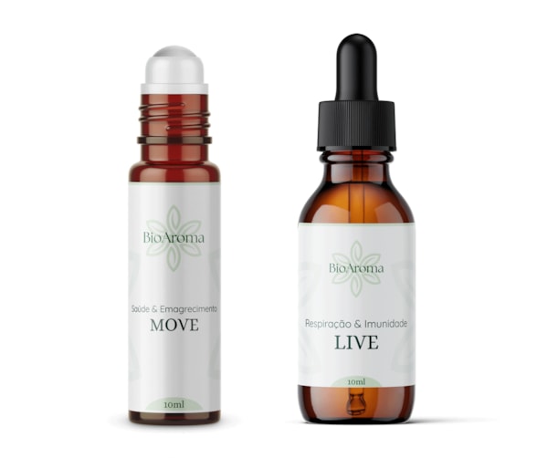 "O Kit BioAroma - Saúde & Disposição é uma solução completa para quem busca equilibrar corpo e mente através da aromaterapia. Composto por dois produtos principais, o MOVE - Saúde & Emagrecimento e o LIVE - Respiração & Imunidade, este kit oferece uma abordagem natural para melhorar sua disposição física e mental. O MOVE, em formato Roll On, é formulado com óleos essenciais como Bétula e Menta, promovendo energia e motivação para a prática de exercícios físicos e auxiliando no controle do apetite. Sua praticidade permite que esteja sempre ao seu alcance, facilitando o uso diário e contínuo para resultados efetivos em sua rotina de saúde e bem-estar.Por sua vez, o LIVE é um blend em gotas projetado para fortalecer o sistema respiratório e imunológico. Com óleos essenciais de Eucalipto e Hortelã-pimenta, este produto melhora a respiração e a clareza mental, fortalecendo as defesas do corpo. Ideal para ser usado em difusores ou aplicado diretamente nas mãos para inalação, o LIVE traz vitalidade e frescor para o seu dia a dia. Ambos os produtos têm validade de 6 meses, assegurando um tratamento duradouro e eficaz.Este kit é indicado para adultos e crianças acima de 12 anos, com exceção de gestantes, lactantes e hipertensos, devido às suas contraindicações. O uso é exclusivamente externo, e deve-se evitar contato com os olhos ou ingestão. Conserve em local fresco e ao abrigo da luz solar para garantir suas propriedades.Transforme sua rotina com o Kit BioAroma, que não são apenas blends comuns, são fórmulas cuidadosamente desenvolvidas para oferecer equilíbrio integral, levando em consideração os princípios da aromaterapia e da bioenergética. Desenvolvidos com óleos essenciais de alta qualidade, extraídos de várias partes das plantas, proporcionam uma experiência sensorial única que harmoniza mente e corpo, potencializando sua energia e bem-estar."
