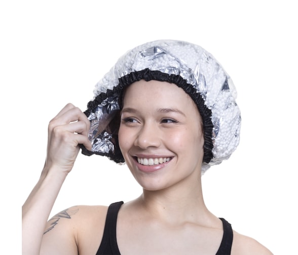 "Santa Clara - Touca de Amaciamento com Isopor Metalizada Touca Metalizada com Isopor para Amaciamento Santa Clara é indicada para o uso de hidratação capilar, procedimentos químicos, banho de óleo, alisamentos e massagem capilar. Também pode ser usada no banho. Com as bolinhas de isopor a touca auxilia no massageamento e relaxamento do couro cabeludo.