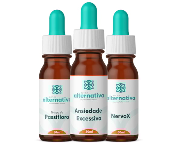 "O Kit Alternativa Trio para Ansiedade Excessiva combina a eficácia de três tratamentos naturais para proporcionar alívio dos sintomas de ansiedade e promover o bem-estar geral. Composto por Floral de Bach, Homeopatia e Tintura de Passiflora, este produto foi cuidadosamente formulado para atender às demandas de quem busca alternativas naturais para melhorar a qualidade de vida.A Fórmula 1, o Floral de Bach, integra Agrimony, Oak, Elm, e Impatiens, potencializados com Brandy 30%, para renovar o seu equilíbrio emocional. A Fórmula 2, NervoX - Homeopatia, incorpora ativos como Cactus grandiflorus T.M e Passiflora incarnata T.M para combater o nervosismo e a agitação, com uma abordagem homeopática segura e eficaz. A Fórmula 3 oferece a Tintura de Passiflora, reconhecida por suas propriedades calmantes.Composições: Floral de Bach (30ml), Homeopatia (60ml) e Tintura (30ml), em administráveis gotas. Recomenda-se, para o floral, 8 gotas duas vezes ao dia; para a homeopatia, 10 gotas diluídas em água a cada hora inicial, com manutenção duas vezes ao dia; e para a tintura, 5 a 20 gotas, três vezes ao dia, diluídas.Cuidados: Não utilize produtos vencidos e armazene-os em locais frescos, longe de odores fortes e fontes de radiação. Consulte um médico ou farmacêutico se os sintomas persistirem. Evite automedicação, já que embora naturais, os florais requerem atenção.Desenvolvido por especialistas e respaldado por referências farmacêuticas, o Trio Alternativa não substitui tratamentos médicos, mas complementa suas iniciativas com segurança e zero riscos de dependência. Experimente este suporte formidable para momentos de inquietude, e resgate sua paz interna com métodos naturais e confiáveis."