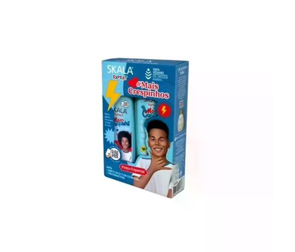 A linha Skala Expert Crespinho Divino Kids limpa sem ressecar, deixando os fios macios e soltinhos. As mamães vão amar e os pequenos vão aproveitar cada momento com esses produtinhos! Além disso toda a linha é LIBERADA, ou seja, sem sulfatos, parabenos, petrolato e óleo mineral. Mais diversão e alegria na hora do banho. O produto sem sulfato tende a espumar menos, mas a nossa espuma que é uma belezinha! Skala é uma empresa Brasileira, fundada em 1986 com o propósito de levar cosméticos de qualidade e preço justo ao mercado. Algumas características da empresa são: transparência, integridade e 100% vegana. No qual procura inovar construindo muito mais que uma grande marca, um jeito de fazer mais e melhor pela autoestima, pelas pessoas, pelo meio ambiente e pelo mundo. – Kit Contém: 1 Shampoo com 325ml e 1 Condicionador com 325ml; – Indicado para cabelos Ondulados, Cacheados, Crespos e Crespíssimos; – Hidratação, Brilho e Antifrizz; – 100% Vegano, % Origem Animal e LIBERADO; – Com Óleo de Coco e Linhaça; INSTRUÇÕES DE USO: Aplique nos cabelos molhados e massageie da raiz. Deixe agir por 1 minuto, enxágue e se necessário repita a operação. Após higienizar os fios com o Shampoo, aplique o Condicionador uniformemente sobre o cabelo limpo e úmido. Deixe agir por 1 a 3 minutos e, em seguida, enxágue.