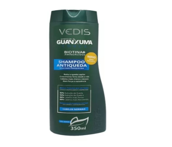 "Principal objetivo: Shampoo Antiqueda e Estimulante do Crescimento Capilar.Validade: Vide embalagem ou consulte-nos.Como usar? Lavar os cabelos diariamente, deixando agir por 2 minutos, podendo enxaguar e repetir a aplicação. Logo após, aplicar o Condicionador Guanxuma VEDIS.Duração do Tratamento: 60 dias aproximadamente para se obter resultados.Perguntas Frequentes Esse medicamento possui contraindicações? Não, não há nenhuma contraindicação para o produto. Em média em quanto tempo posso ver resultados? Já nos primeiros dias de uso, desde que usado corretamente conforme descreve a posologia. Existem efeitos colaterais? Não existem efeitos colaterais para esta solução. Por quanto tempo posso utilizar o produto? Pode utilizar o produto enquanto perceber os seus melhores benefícios.O Produto DESCRIÇÃO Composição Advertências Shampoo GuanxumaNormais e Oleosos 300ml - VedisEstimulante do Crescimento, Tratamento da Alopecia, Previne Queda Capilar. Eficácia cientificamente comprovada, 92% Cabelo mais cheio e denso**, 83% Fortalecimento capilar**, 75% Redução da Queda.Formulado com quatro extratos naturais diferentes: Guanxuma, Capsicum, Jaborandi e Urtiga. Com destaque para o extrato natural de GUANXUMA que têm propriedades exclusivas para diminuir a queda, aumentar o crescimento e dar volume aos cabelos.Os efeitos destas soluções podem variar de pessoa para pessoa. Na persistência dos sintomas o médico ou farmacêutico deverá ser consultado para novas orientações. ADVERTÊNCIAS : Suspender o uso em caso de irritação. Manter fora do alcance de crianças. Conservar em local fresco. Uso externo."