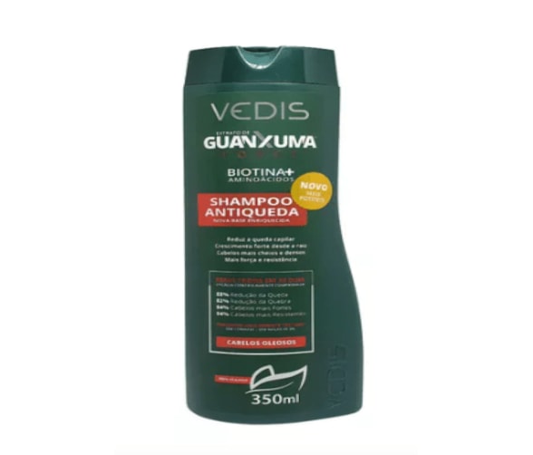 "Principal objetivo: Shampoo Antiqueda e Estimulante do Crescimento Capilar.Validade: Vide embalagem ou consulte-nos.Como usar? Lavar os cabelos diariamente, deixando agir por 2 minutos, podendo enxaguar e repetir a aplicação. Logo após, aplicar o Condicionador Guanxuma VEDIS.Duração do Tratamento: 60 dias aproximadamente para se obter resultados.Perguntas Frequentes Esse medicamento possui contraindicações? Não, não há nenhuma contraindicação para o produto. Em média em quanto tempo posso ver resultados? Já nos primeiros dias de uso, desde que usado corretamente conforme descreve a posologia. Existem efeitos colaterais? Não existem efeitos colaterais para esta solução. Por quanto tempo posso utilizar o produto? Pode utilizar o produto enquanto perceber os seus melhores benefícios.O Produto DESCRIÇÃO Composição Advertências Shampoo GuanxumaNormais e Oleosos 300ml - VedisEstimulante do Crescimento, Tratamento da Alopecia, Previne Queda Capilar. Eficácia cientificamente comprovada, 92%  Cabelo mais cheio e denso**, 83% Fortalecimento capilar**, 75% Redução da Queda.Formulado com quatro extratos naturais diferentes: Guanxuma, Capsicum, Jaborandi e Urtiga. Com destaque para o extrato natural de GUANXUMA que têm propriedades exclusivas para diminuir a queda, aumentar o crescimento e dar volume aos cabelos.Os efeitos destas soluções podem variar de pessoa para pessoa. Na persistência dos sintomas o médico ou farmacêutico deverá ser consultado para novas orientações. ADVERTÊNCIAS : Suspender o uso em caso de irritação. Manter fora do alcance de crianças. Conservar em local fresco. Uso externo."