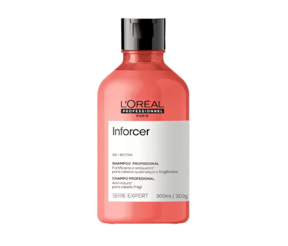 Shampoo para cabelos frágeis e quebradiços. L'Oréal Professionnel Inforcer Serie Expert estimula o metabolismo de proteínas contra a quebra e a favor do crescimento do fio, promovendo um reforço da fibra capilar.