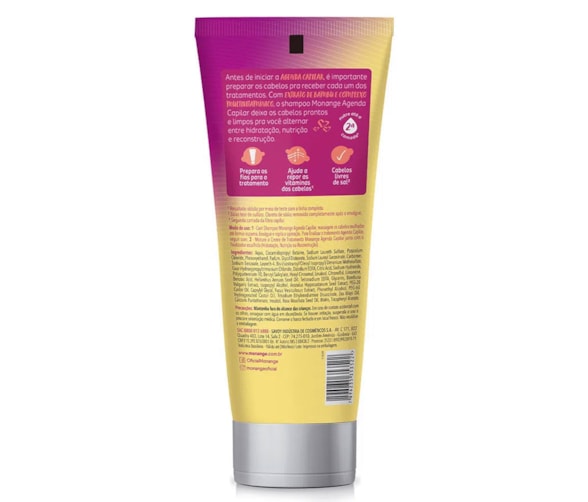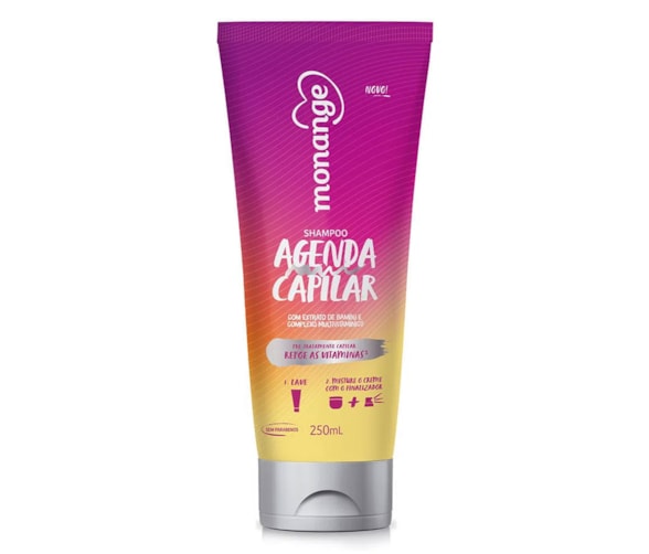 Shampoo Monange Agenda Capilar - Sua fórmula possui extrato de Bambu e complexo vitamínico, que ajudam a repor as vitaminas dos cabelos além de nutrir até a segunda camada da fibra capilar - A Agenda Capilar Monange é uma rotina de cuidados que intercala hidratação, nutrição e reconstrução para tratar e hidratar os fios danificados pelas agressões diárias, mantendo os muito mais bonitos e saudáveis - Sem parabenos - Cabelos livres de sal.