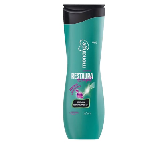 Shampoo Monange Restaura Que Eu Gosto - Fórmula com arginina e aminoácidos nutre o fio de dentro para fora, chegando até a segunda camada da fibra capilar, restaurando profundamente o cabelo danificado e aumentando a resistência à quebra - Shampoo é livre de parabenos e sal.