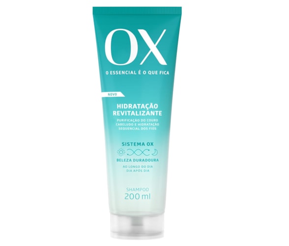 A linha OX Hidratação Revitalizante possui formulação com algas marinhas e hidrolato, que proporciona a purificação do couro cabeludo, além de hidratar os fios, garantindo brilho e movimento por mais tempo. Com o exclusivo Sistema OX Beleza Duradoura, toda a linha que é 100% vegana e não testada em animais contém fragrância fixadora concentrada e produtos livres de sal*, silicones pesados e óleo mineral. É garantia de proteção, hidratação e beleza dos cabelos ao longo do dia, dia após dia. *Sem adição de cloreto de sódio.