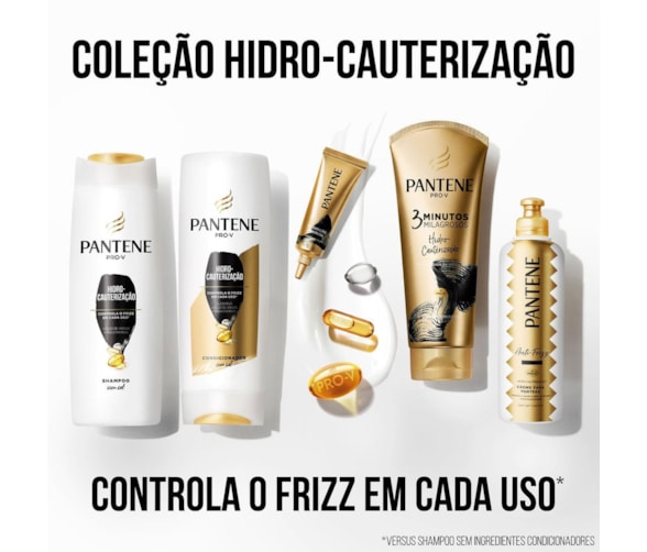 A coleção Hidro-Cauterização sem sal* da Pantene foi criada para cabelos danificados e tratados quimicamente - Sua fórmula Pro-vitamina com óleo de argan hidrata profundamente os cabelos desde a raiz, protegendo-os dos efeitos gerados por tratamentos químicos - Os shampoos apresentan uma nova tecnologia patenteada chamada lipídios de restauração, que fortalece os cabelos e os deixa preparados para enfrentar o estresse do dia a dia - Uma nova era na qual eles não apenas limpam como também possuem fórmulas que podem dar aos cabelos uma maciez extraordinária e muita força - Tenha cabelos sedosos, sem aspereza e sem medo de danificá-los ao alisá-los ou penteá-los - Complemente os cuidados com o cabelo com os outros produtos da coleção: condicionador, condicionador 3 Minute Miracle, creme para pentear, máscara intensiva e ampolas.