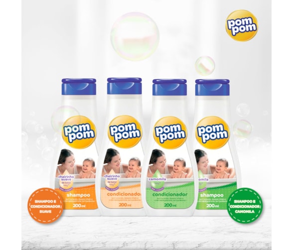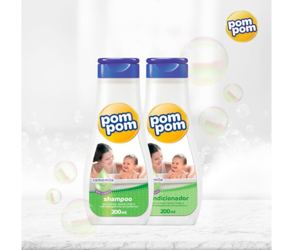 Shampoo Pom Pom Camomila 200mL - Shampoo Camomila Pom Pom possui extrato de Camomila, que além de auxiliar no realce da cor, oferece ainda mais brilho aos cabelos do bebê - Sua fórmula dermatologicamente testada não irrita os olhos, possui pH balanceado e não contém corantes.