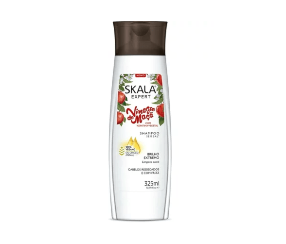 O Shampoo Skala Expert Vinagre de Maçã 325ml faz uma limpeza suave, diminuindo a oleosidade do couro cabeludo, eliminando os fios ressecados e com frizz. Essa linha reduz a porosidade, proporciona brilho extremo e fios saudáveis. Enriquecida com Vinagre de Maçã associado à vitamina E, D’Panthenol e Keratina Vegetal, proporciona uma reconstrução perfeita, selando as cutículas, restaurando e devolvendo maciez e beleza aos fios.