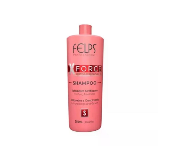 Fórmula enriquecida com Biotina, Óleos de Rícino e Coco, Beauplex VH (Blend de Vitaminas E, C, B3, B5 E B6), para todos os tipos de cabelo, principalmente os com dificuldade de crescimento. Com ação antiquebra, promove limpeza suave, força, crescimento, brilho e fios saudáveis. Modo de uso: Aplique o shampoo sobre o cabelo úmido, massageie suavemente o couro cabeludo e enxágue completamente. Se necessário, repita a operação. Para melhores resultados, convém utilizar associado aos demais produtos da linha Felps X Force. Precauções: Em caso de contato com os olhos, lavá-los imediatamente com água em abundância. Manter em local fresco e fora do alcance de crianças.