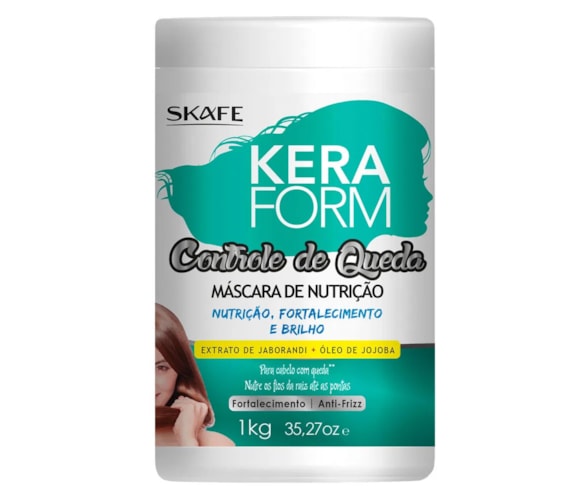 Skafe Keraform Controle de Queda Máscara de Nutrição - A Máscara de Nutrição Keraform Controle de Queda contém Extrato de Jaborandi e Óleo de Jojoba que, juntos, ajudam a reestruturar a fibra capilar, prevenindo a queda por quebra - Seu efeito encobre o cabelo da raiz até as pontas, dando força aos fios, restaurando a elasticidade, ajudando a prevenir o ressecamento da fibra danificada.