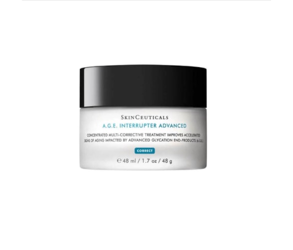 "Skinceuticals A.G.E. Interrupter Advanced 48mlSkinceuticals A.G.E. Interrupter Advanced é um creme corretivo potente que ajuda a reverter os sinais visíveis de envelhecimento e a proteger a pele contra a perda de colágeno causada pela glicação, incluindo rugas, flacidez e opacidade.Com alta concentração de ativos e máxima eficácia clinicamente comprovada por dermatologistas, A.G.E. Interrupter Advanced é a revolução no tratamento antirrugas. É formulado com 18% de Proxylane concentrado, 4,25% de uma mistura de flavonoides de frutas silvestres e 0,1% de ácido glicirretínico. Essa tecnologia avançada é clinicamente comprovada para ajudar a melhorar a aparência das rugas, restaurar a firmeza da pele e realçar a radiância da pele.Como usar: Duas vezes ao dia, aplique uma camada fina e uniforme do creme antirrugas A.G.E. Interrupter Advanced em todo o rosto, pescoço e colo. Se estiver usando de manhã, aplique após um sérum antioxidante de vitamina C da SkinCeuticals e antes de um protetor solar da SkinCeuticals. Se estiver usando com um retinol à noite, aplique após o retinol."