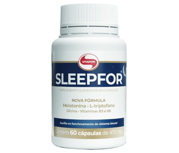 Sleepfor Vitafor 470mg c/60 Cápsulas - SLEEPFOR® É um suplemento alimentar à base de L-Triptofano, Glicina, vitamina B3 e B6, com zero adição de açúcares.