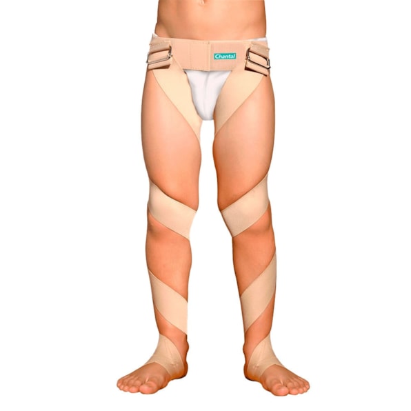 Confeccionado em elástico confortável e resistente, ajustável no quadril e no comprimento, reguladores em aço e ajuste com velcro, para auxiliar a correção das rotações dos membros inferiores, proporcionando uma boa recuperação.