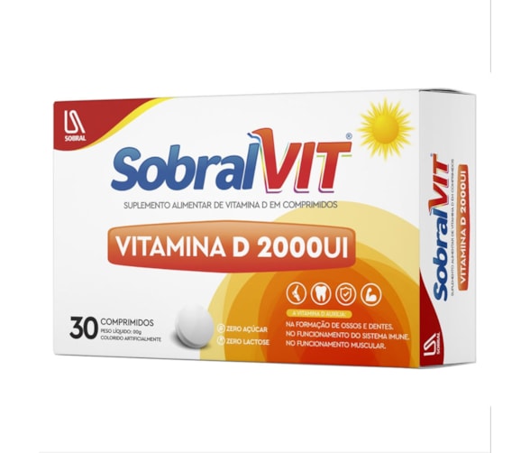 SobralVit D 2000UI c/30 Comprimidos - Auxilia na formação dos ossos e dentes - No funcionamento do sistema imune - No funcionamento do sistema muscular.
