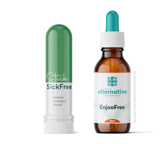 "O Kit Enjoo Free combina dois produtos naturais e eficazes contra náuseas, ideal para gestantes e crianças. Inclui o Stick Aromático Enjoo SickFree e a Homeopatia EnjooFree. O Stick Aromático Enjoo SickFree, com óleos essenciais puros de limão, bergamota e hortelã-pimenta, oferece alívio instantâneo ao inalar seu aroma, controlando a sensação de enjoo ao atuar diretamente na zona de gatilho do cérebro responsável pelos vômitos. Este método de aromaterapia é uma solução segura e natural que pode ser utilizada conforme necessário.A Homeopatia EnjooFree é uma fórmula especialmente desenvolvida para combater enjôos durante viagens de avião, carro, barco ou ônibus. Composta por ingredientes homeopáticos como Petroleum 6CH, Cocculus indicus 6CH e Calcarea carb 12CH, ela ajuda a equilibrar o ouvido interno, minimizando os sintomas de náusea causados pelo movimento. Para melhores resultados, recomenda-se a ingestão de 5 gotas, cinco vezes ao dia, começando 2 a 3 dias antes da viagem.Ambos os produtos do Kit são desenvolvidos pela Botica Alternativa com foco em segurança e bem-estar, possuindo composições 100% naturais e exclusivas da botica. É importante seguir as orientações de uso e armazenagem para garantir a eficácia do tratamento. Na persistência dos sintomas, é aconselhável consultar um profissional de saúde. O Stick tem validade de 6 meses e a Homeopatia 3 meses, assegurando assim um tratamento eficaz e seguro ao longo desse período.Este Kit é uma aquisição valiosa para aqueles que buscam alternativas terapêuticas naturais para enjôos e náuseas, promovendo saúde e bem-estar de forma holística. É indicado para pessoas de todas as idades, incluindo lactantes e gestantes, e está pronto para ser produzido e entregue em apenas um dia. Aproveite a praticidade e eficiência do Kit Enjoo Free para tornar suas viagens mais agradáveis e tranquilas."