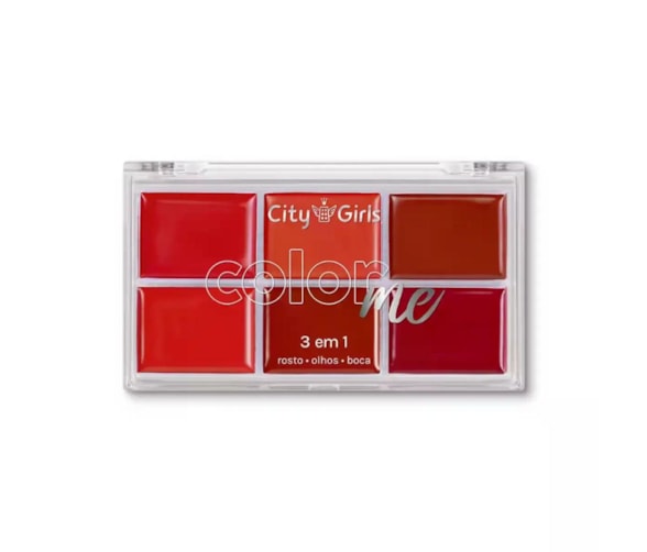Os produtos multifuncionais e cremosos estão super em alta e, por isso, a City Girls que sempre está por dentro de tudo, trouxe para vocês a Color Me 3 em 1! Ela é uma paleta que vem 6 tons cremosos, com cores que podem ser usadas no rosto como blush, nos olhos como sombra ou delineado e na boca, como batom ou contorno labial! Ela tem a textura perfeita para ser usada nessas três regiões e pode ser esfumada com os dedos, pincel ou esponjinha... Vai do seu gosto! A paleta é ótima também, porque possibilita que você misture os tons e crie novas cores para te atender de diferentes formas! Ela é perfeita para uso pessoal e também para maquiadores que precisam de uma paleta compacta, prática e multifuncional que vai te auxiliar e te salvar sempre que precisar! A Color Me vem nessa embalagem transparente sofisticada e muito prática, com o tamanho ideal de divisórias do produto. Você vai amar essa paleta e se chocar com a performance e qualidade que ela tem! Disponível nas versões A e B, sendo uma com tons mais rosados e a outra com tons avermelhados. A REF-308