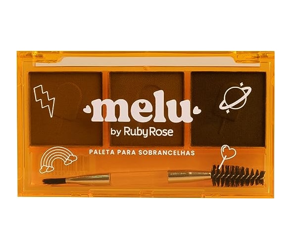 É um produto de maquiagem projetado para melhorar a aparência das sobrancelhas. A Sombra Para Sobrancelhas da Melu tem uma alta pigmentação, contendo um pincel e três cores de sombras, Marrom Claro, Marrom Médio e Preto. Contém um pincel duo, podendo ser usado para delinear e esfumar. Indicado: Para todos os tons de sobrancelhas Para criar o desenho perfeito de sua sobrancelha.