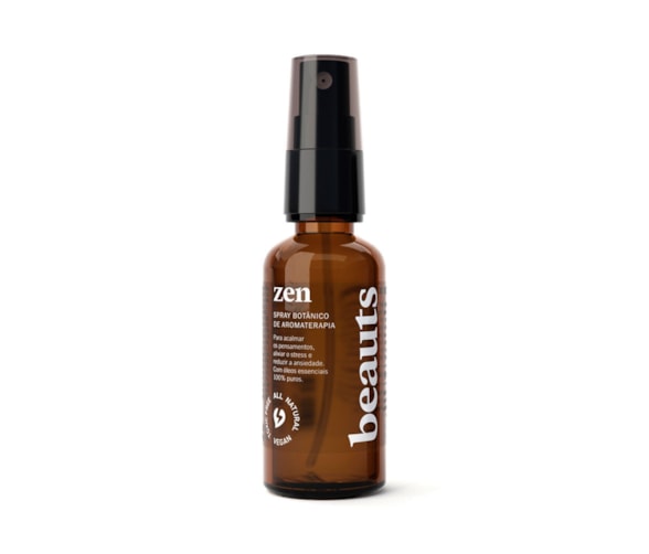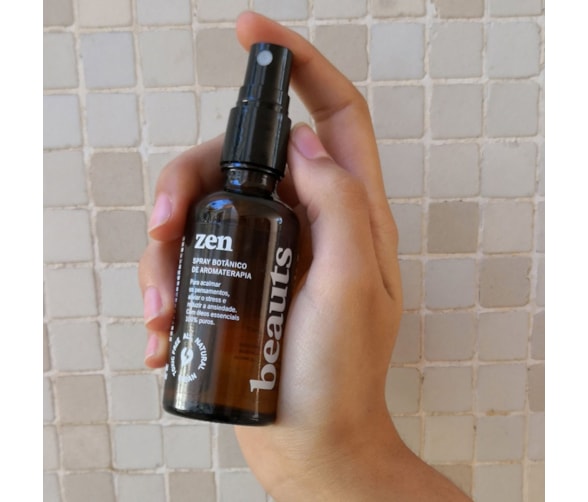 O Spray Relaxante de Aromaterapia Zen da Beauts é um formulado com um blend de óleos essenciais de cedro, manjerona, lavanda e capim-limão que promovem efeitos aromaterápicos de relaxamento e bem-estar, diminuindo o estresse, ansiedade e esgotamento mental. É um spray bem versátil e prático, podendo ser usado no pulso, no travesseiro, no ambiente ou durante o banho.