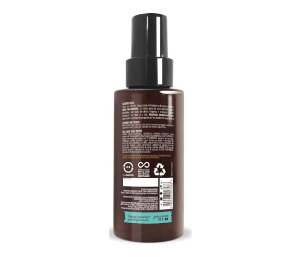 Composição: aqua (água purificada), lavandula hybrida extract (óleo essencial de lavandim), melaleuca alternifolia leaf extract (óleo essencial de melaleuca), d-limonene (terpeno de laranja), sodium lauryl sulfate (Lauril Sulfato de Sódio – derivado de óleo de coco e palma), alcohol (álcool etílico neutro, derivado de cana de açúcar – grau alimentício), laureth (álcool laurílico etoxilado – derivado de óleo de coco e palma), citric acid (ácido cítrico anidro – derivado de cana de açúcar), alpha-terpineol (derivado do óleo essencial de pinho).