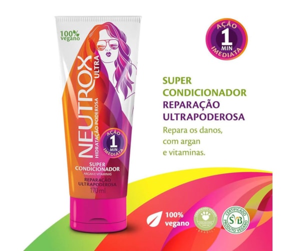 Super Condicionador Neutrox Ultra - O Super Condicionador tem ação de máscara de tratamento em 1 minuto e pode ser usado também como creme para pentear - Reparação: com Argan e Vitaminas que reparam os danos devolvendo a vida aos cabelos.