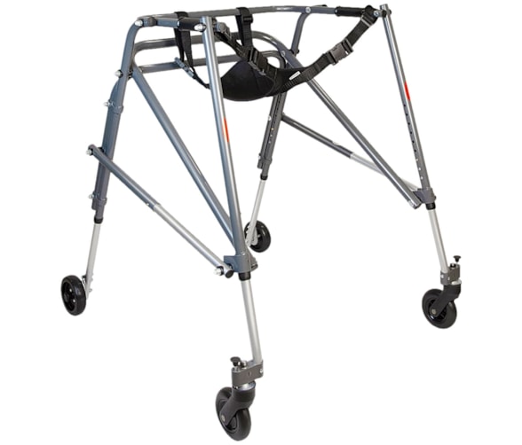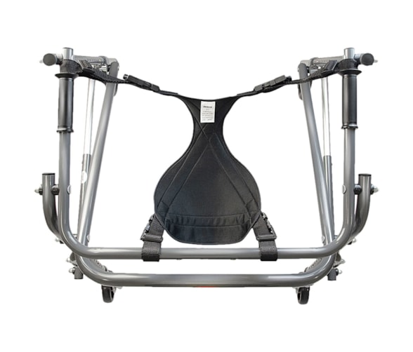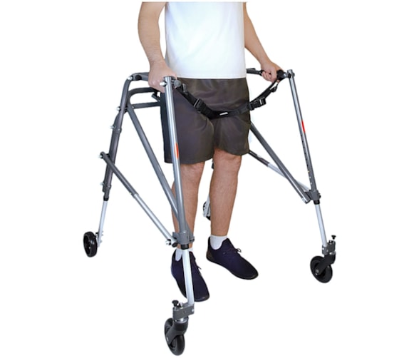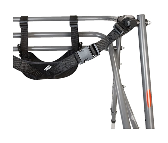 O Suporte Pélvico Flexível é indicado para uso com o Andador Posterior de Alumínio, como auxílio para marcha.