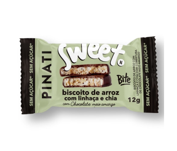 Sweet Bite Biscoito de Arroz, Linhaça e Chia Pinati 12g - Sweet Bite Biscoito de Arroz com Linhaça e chia com cobertura de chocolate meio amargo - Mordida gostosa que faz bem.