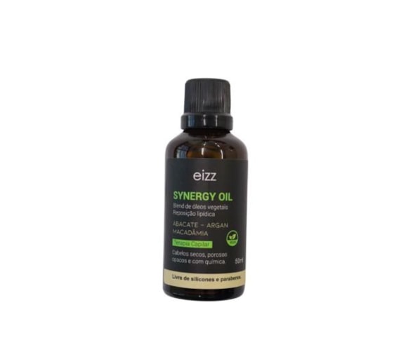 O Synergy Oil é um blend de óleos vegetais que faz uma reposição lipídica nos cabelos. Possui propriedade regenerativa, nutritiva e hidratante. Controla o frizz e restaura o brilho e a maciez de forma instantânea.