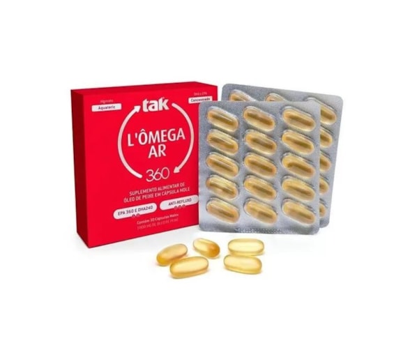 O que é: L'Ômega AR é um suplemento alimentar de óleo de peixe para prevenção de doenças cardiovasculares com Ômega 3 de peixe (DHA + EPA) Anti Refluxo.