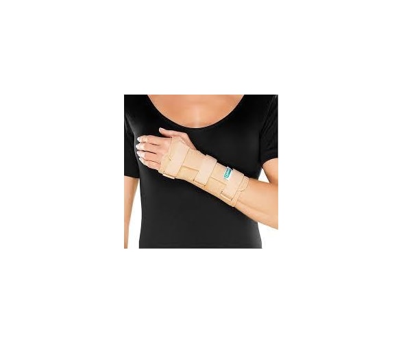 Confeccionada em lona dupla resistente, tala em plástico rígido (ABS), leve e resistente, que não resseca ou quebra com o passar do tempo, que acompanha a anatomia da região do punho.