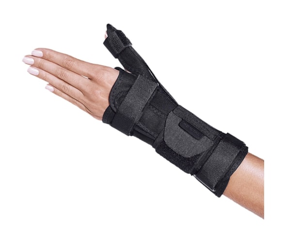 O produto possui 3 talas que oferecem imobilização para o punho e polegar.