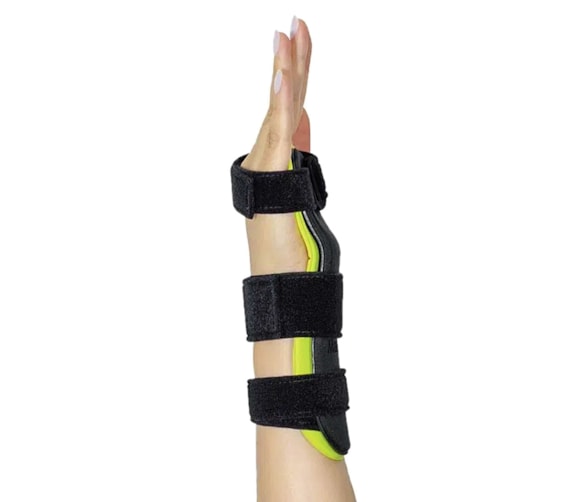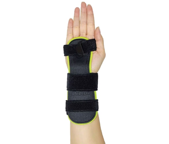 Com tala anatômica, desenvolvida a partir de material reciclado, que promove maior estabilidade e restringe os movimentos do punho.