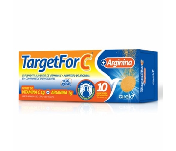 TargetFor C +Arginina Efervescente 1g c/10 Comprimidos - Suplemento Alimentar de Arginina e Vitamina C - Fortalece o sistema imunológico - Ajuda no combate a gripes e resfriados - Auxilia no combate ao cansaço físico e mental.