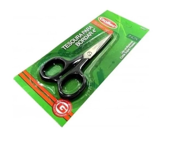 A tesoura é composta de Inox e material sintético, para realizar cortes precisos e com delicadeza.