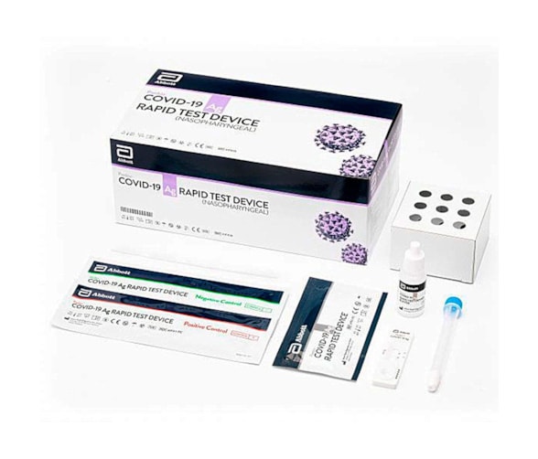 Ensaio imunocromatográfico para detecção qualitativa de antígenos (proteina N) do SARS-CoV-2 (COVID-19). Sensibilidade: 96,52%; Especificidade: >99,9%; Armazenamento: 2 a 30°C; Amostra: swab nasal/swab de nasofaringe e Tempo do Teste: 2-15 minutos (não ler após 30 minutos).