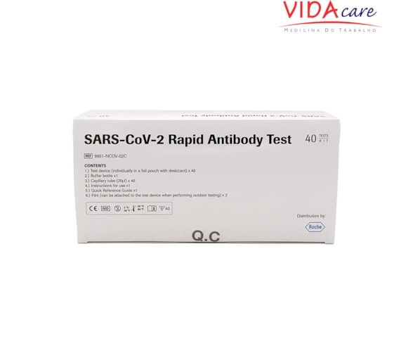 Testes Rápido de Anticorpo, da Roche, realizado em domicílio pela Vida Care - O Teste Rápido de Anticorpo SARS-CoV-2 é um imunoensáio cromatográfico rápido para a detecção qualitativa de anticorpos contra SARS-CoV-2 em soro, plasma ou sangue total humano - O Teste Rápido de Anticorpos SARS-CoV-2 deve ser utilizado para identificar indivíduos que desenvolveram resposta imunológica ao vírus SARS-CoV-2, indicando infecção prévia. Tempo para o resultado: 15 minutos a 30 minutos - Oferecem desempenho confiável quando o teste laboratorial não é acessível - Acessíveis e controlam a propagação do vírus após o contato com indivíduos infectados - Testes prontos para uso e que permitem ações imediatas, otimizando a jornada do paciente.