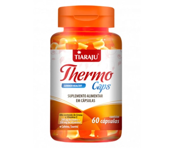 Thermo Caps Tiaraju c/60 Cápsulas - Possui em sua formulação Cromo, Taurina, vitamina C e cafeína, que proporcionam os seguintes benefícios: “O cromo auxilia no metabolismo de proteínas, carboidratos e gorduras - A cafeína auxilia no aumento do estado de alerta e na melhora da concentração - Auxilia na proteção dos danos causados pelos radicais livres, auxilia na absorção de ferro dos alimentos e atua na produção e manutenção do colágeno.
