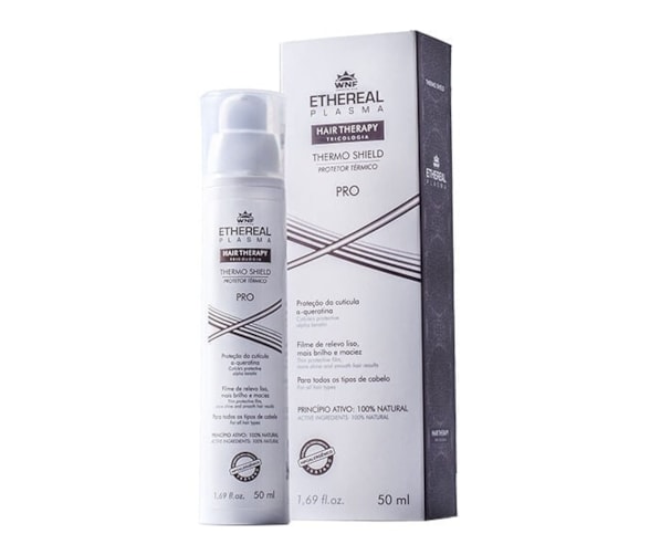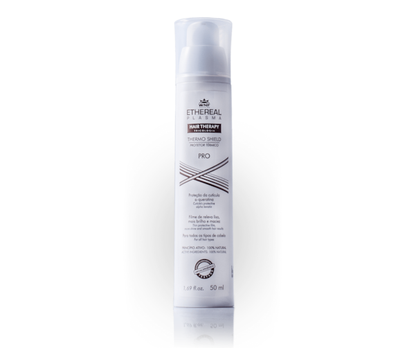 Protetor térmico Ethereal Plasma para manter os ativos do tratamento e evitar o estresse no momento da secagem e modelagem dos cabelos.