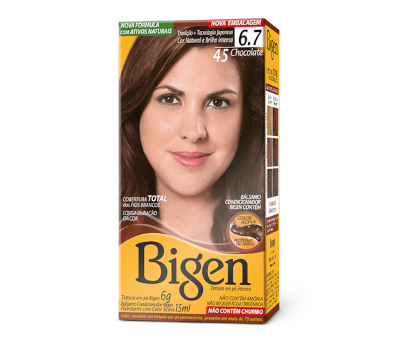 A Tintura Bigen garante cobertura total dos cabelos, com ativos naturais que não danificam os fios, mantendo a saúde dos fios. Sua fórmula não leva amônia nem chumbo e não requer água oxigenada. Super prática, ela não agride a fibra. É ideal para colorir os cabelos brancos, cobrindo 100% dos fios com tonalidades intensas. Além da cobertura total, a tinta ainda garante longa duração da cor, brilho intenso e acabamento natural. O produtinho conta com tecnologia japonesa para trazer o melhor resultado pra você. A tintura pode ser usada por homens e mulheres. Na hora de usar, é só misturar o pó com água e pronto! O resultado é uma coloração cremosa, fácil de aplicar e com efeito saudável nos fios.
