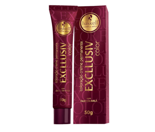A coloração creme permanente Excllusiv Color Haskell promove cor profunda, duradoura, brilhante e uniforme da raiz ás pontas, além de uma perfeita cobertura dos cabelos brancos. Enriquecida com Óleo de Avelã, proporciona hidratação intensa, nutrição e toque aveludado.