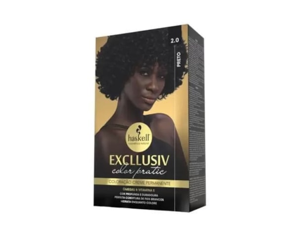 A coloração creme permanente Excllusiv Color Haskell promove cor profunda, duradoura, brilhante e uniforme da raiz ás pontas, além de uma perfeita cobertura dos cabelos brancos. Enriquecida com Óleo de Avelã, proporciona hidratação intensa, nutrição e toque aveludado.