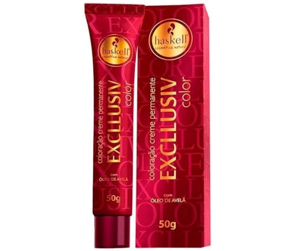 A coloração creme permanente Excllusiv Color Haskell promove cor profunda, duradoura, brilhante e uniforme da raiz ás pontas, além de uma perfeita cobertura dos cabelos brancos. Enriquecida com Óleo de Avelã, proporciona hidratação intensa, nutrição e toque aveludado.