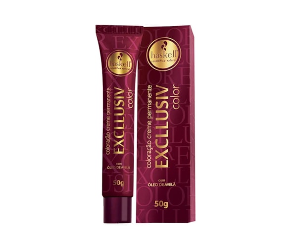 A coloração creme permanente Excllusiv Color Haskell promove cor profunda, duradoura, brilhante e uniforme da raiz ás pontas, além de uma perfeita cobertura dos cabelos brancos. Enriquecida com Óleo de Avelã, proporciona hidratação intensa, nutrição e toque aveludado.
