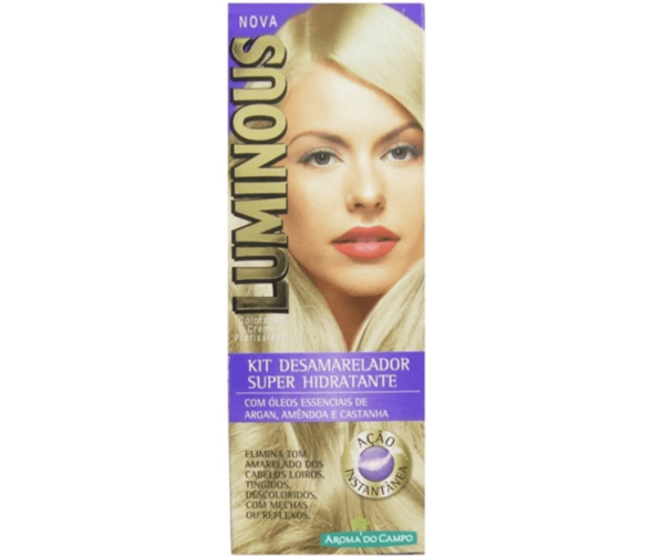 Kit Desamarelador Luminous Profissional Super Hidratante contém uma combinação balanceada de nanopigmentos violetas para eliminar de forma imediata e duradoura os tons amarelados indesejáveis dos cabelos loiros, com mechas ou reflexos de todos os tons.